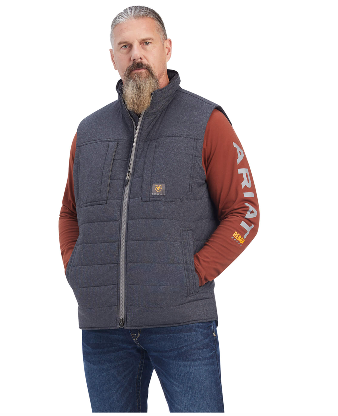 Ariat- 10041592- Men's Rebar Valiant Stretch Canvas Water Resistant Insulated Vest- CHARCOAL HEATHER