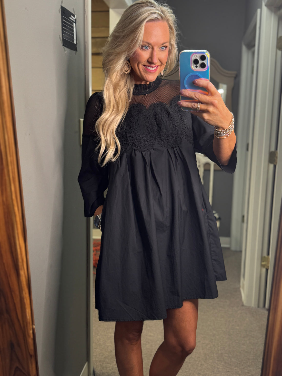 This 3/4 sleeve babydoll dress combines comfort and style effortlessly. Featuring a delicate mesh contrast...
