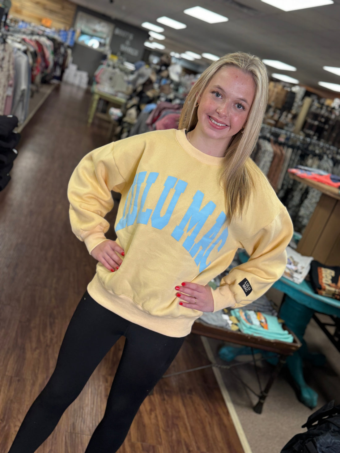Stay cozy and colorful with the Lulu Mac Sweatshirt in butter and light blue! Made...