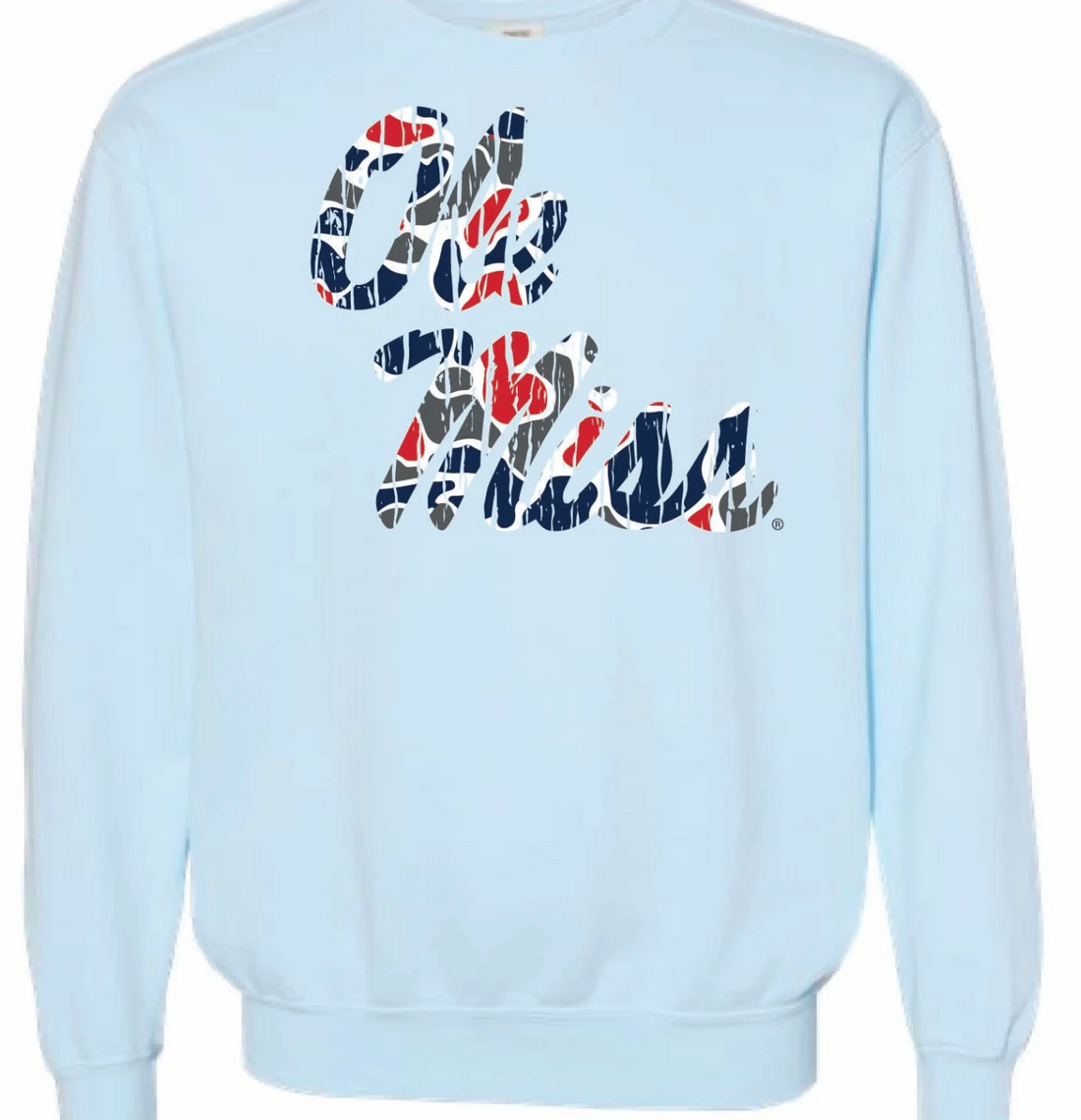 University of Ole Miss 8.3 ounce 80% ring spun cotton/20% polyester Soft washed garment dyed...