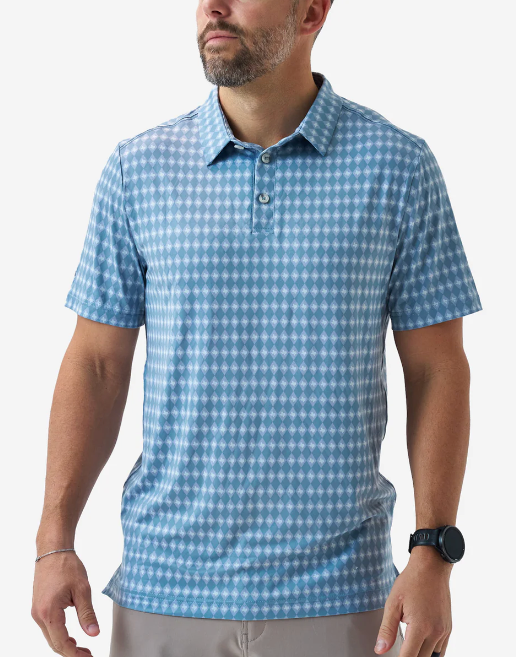 Master the game of style with this striking Tic Tac Toe Print Polo from F/X...