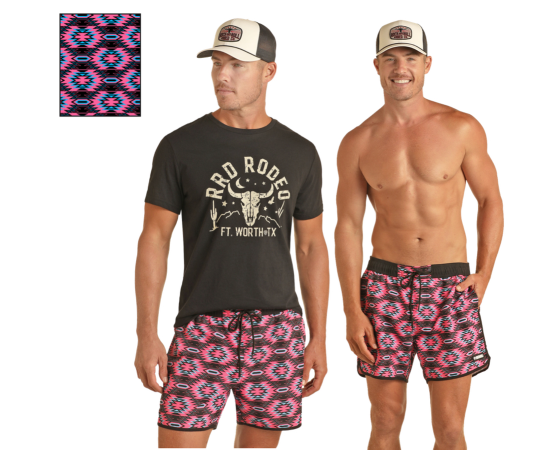 Add some fun and style to your water activities with our Pink Aztec Swim Shorts....