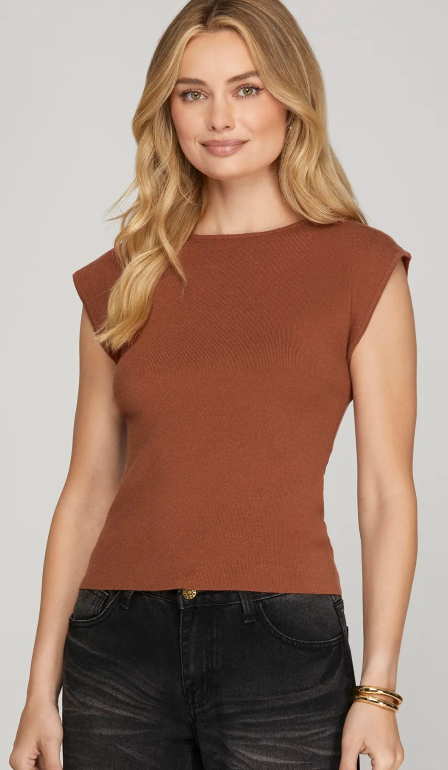 This sleeveless knit rib top combines comfort and style with built-in shoulder padding for a...