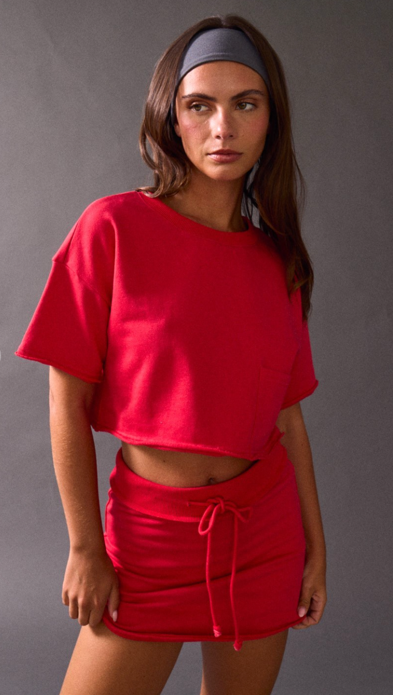The Nora Crop T-Shirt and Skort Set combines effortless style with practical comfort. This two-piece...