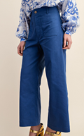These ankle cropped summer pants combine the comfort of stretchy fabric with the classic look of denim. Designed for warm weather, they offer a flattering fit and practical pockets for everyday essentials. Perfect for casual outings or relaxed office days, they keep you cool and stylish all season long.