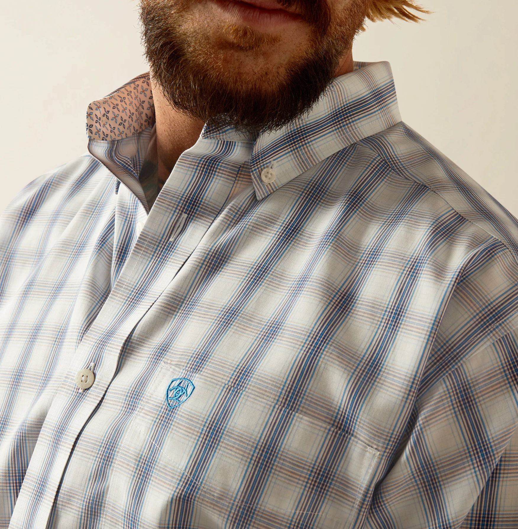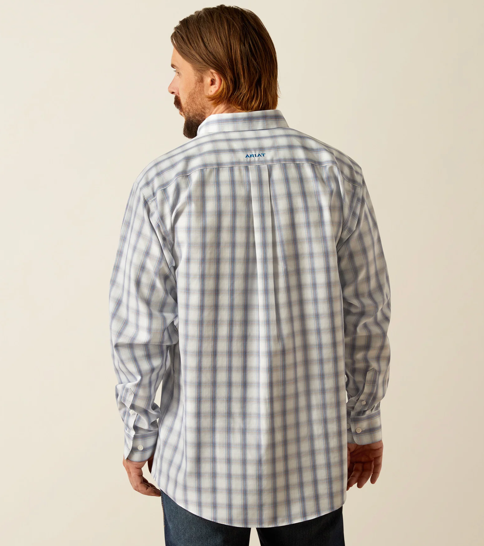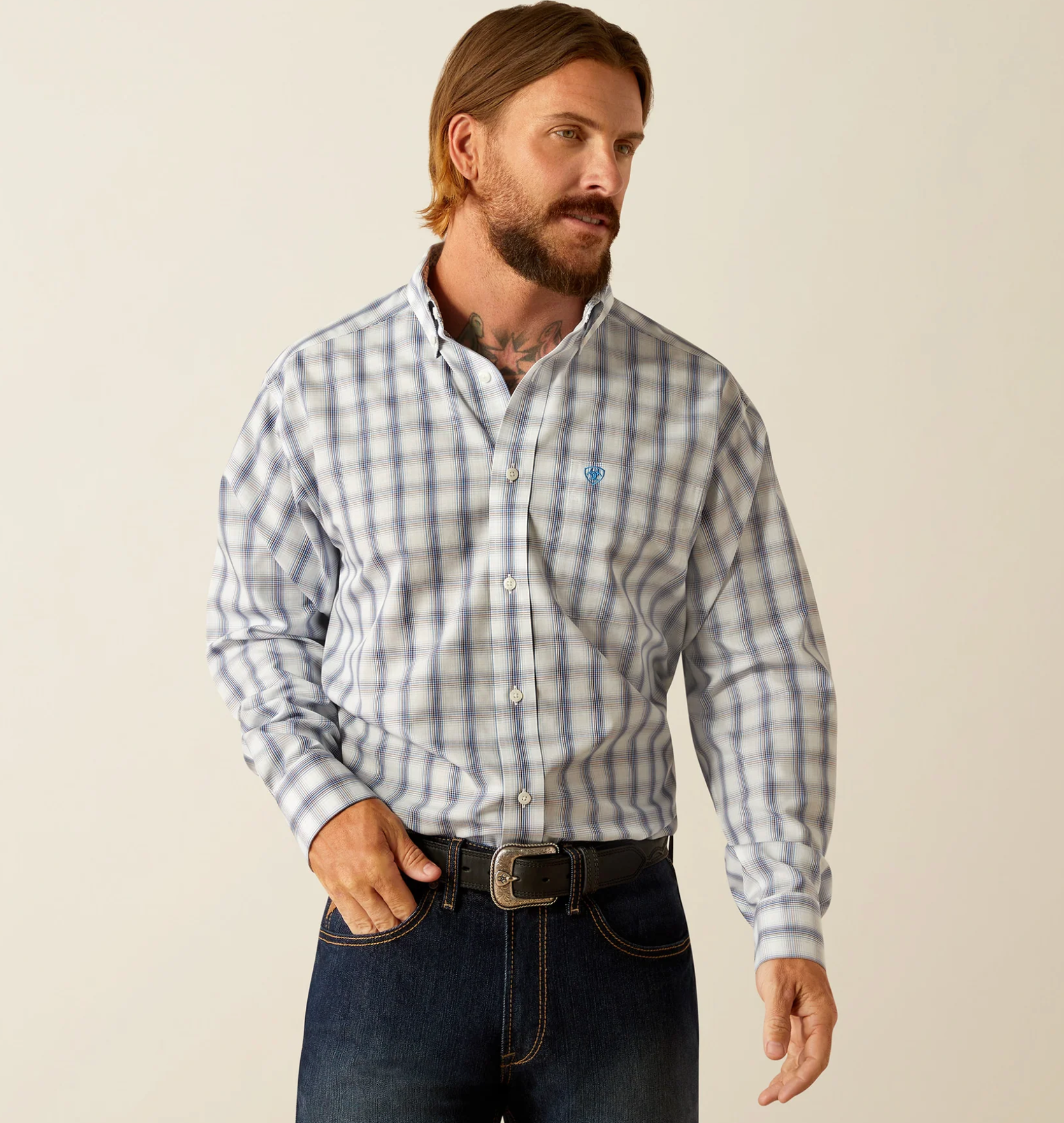 White Plaid Wrinkle Free Briar Long Sleeve Classic Fit Button Down Shirt.