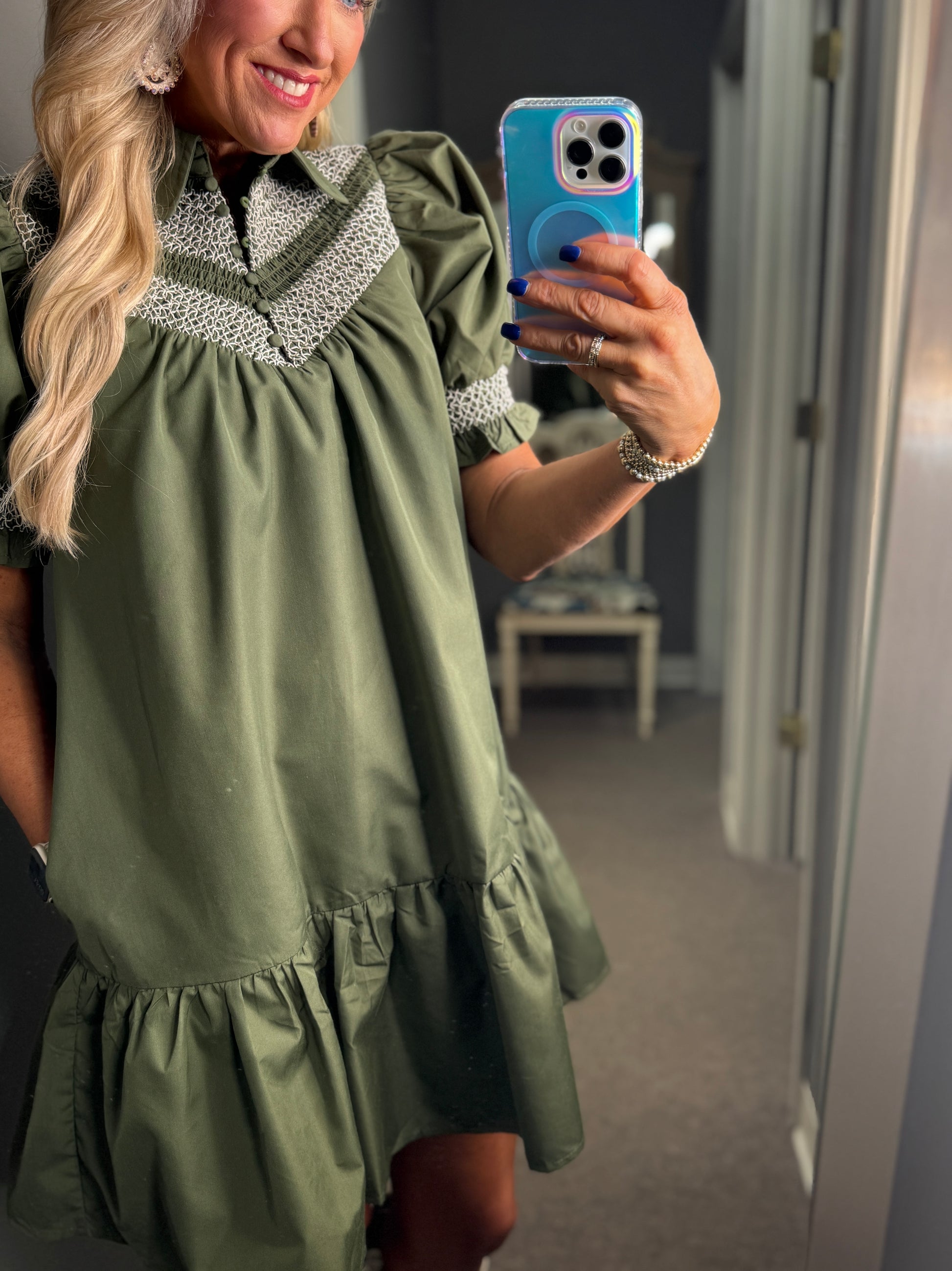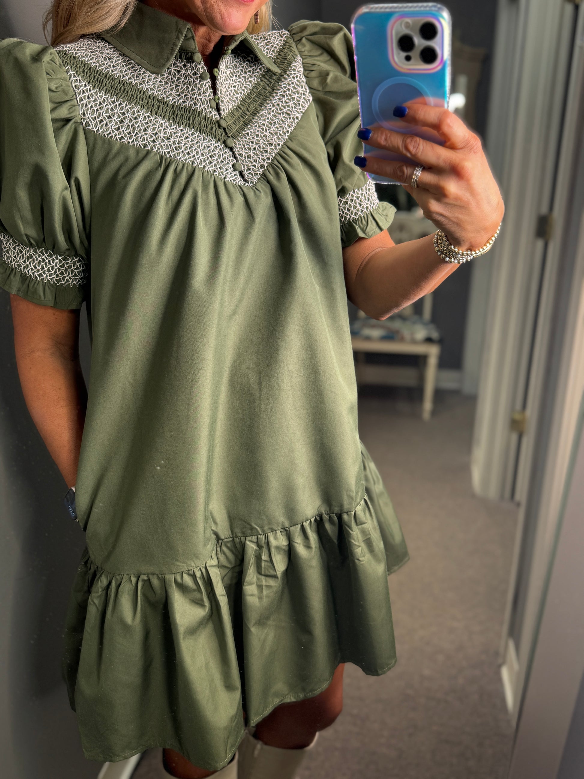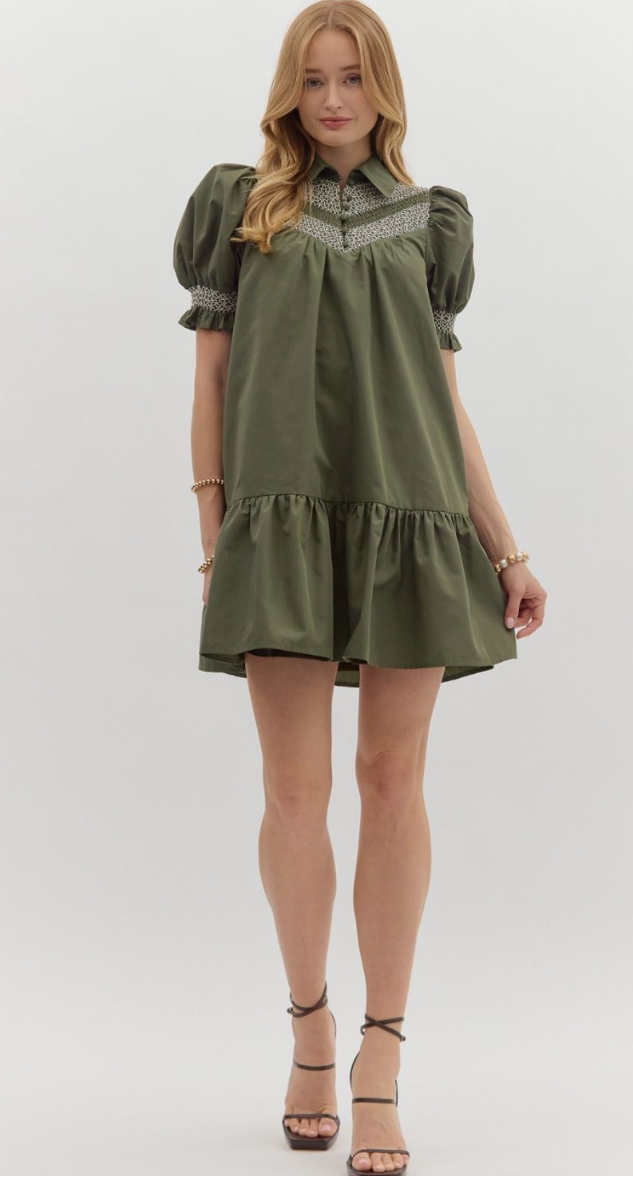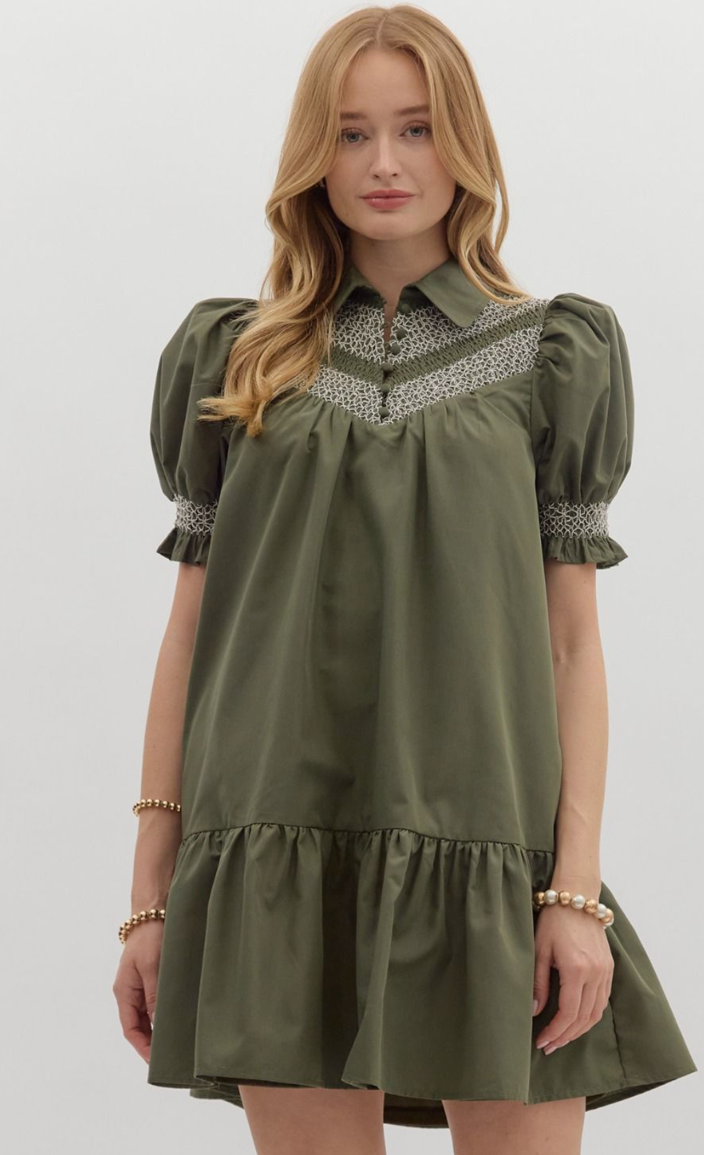 This lightweight woven mini dress combines delicate embroidered smocking on the yoke and cuffs with a classic collar and button-front closure for effortless style. Designed with convenient side pockets and a lined, non-sheer fabric, it offers comfort and practicality without compromising on elegance. Perfect for warm days, its breathable construction ensures you stay cool while looking polished.