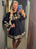 This tiered babydoll dress features elegant long puff sleeves and delicate embroidery, combining comfort with charming style. Designed with convenient side pockets and a button closure at the back, it offers both practicality and a flattering fit. Perfect for adding a feminine touch to your wardrobe while ensuring ease of wear.