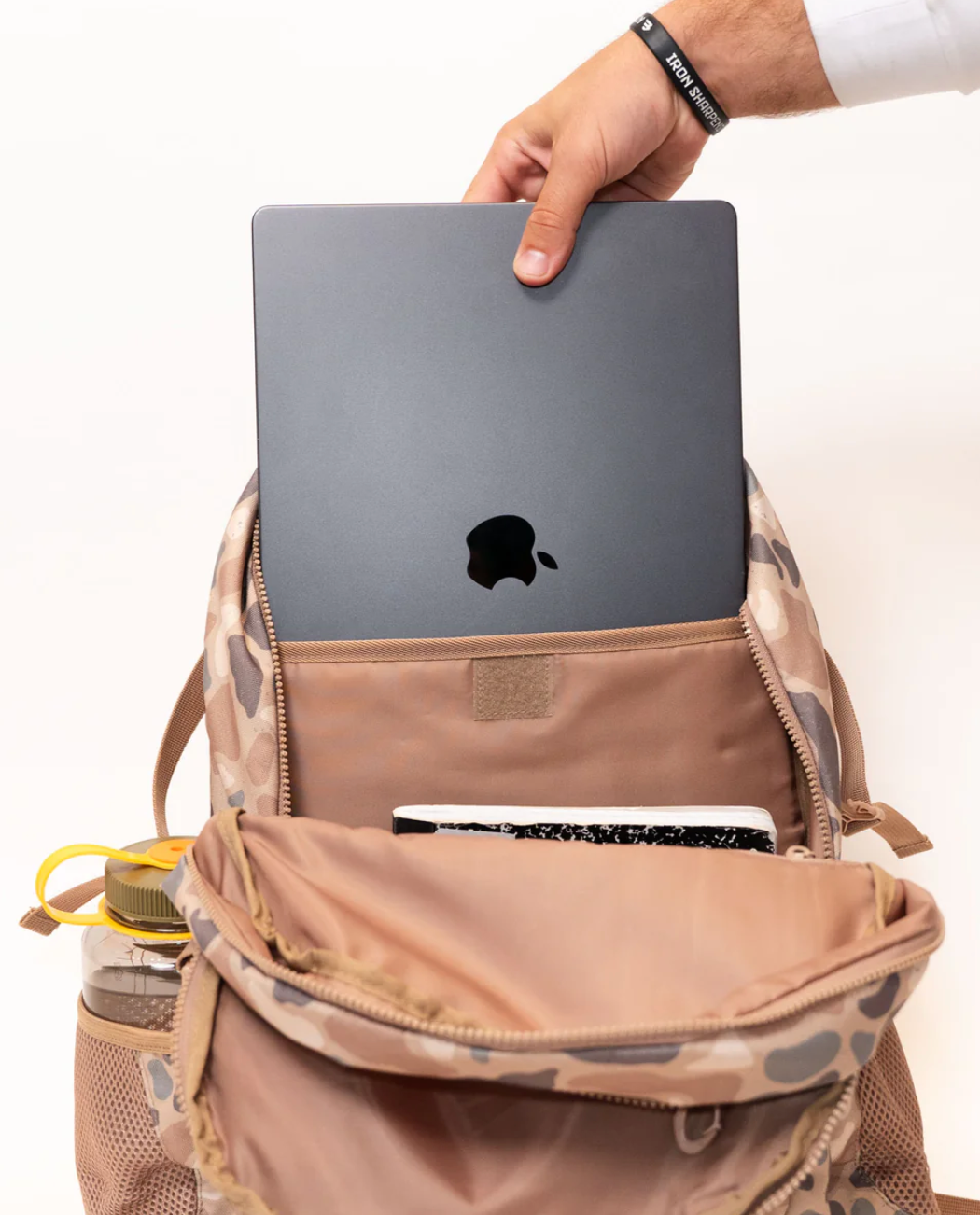Crafted from durable 100% polyester, the Pintail Camo Backpack is designed to accompany you on all your adventures. With a spacious 25-liter capacity, our backpacks provide ample room for all your essentials. The large laptop sleeve can comfortably accommodate up to a 15-inch laptop, ensuring your technology stays safe and secure on the go. Featuring two large main zipper compartments, organizing your belongings has never been easier. Whether you're commuting to work, heading to class, or embarking on a weekend getaway, this backpack offers convenient storage for everything you need. Measuring 18 inches tall, 12 inches wide, and 8 inches deep when full, our backpack strikes the perfect balance between size and functionality.