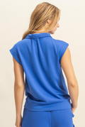 Get ready to turn heads in this trendy top! The sophisticated mock neckline and half-zip detailing create a stylish look, while the sleeveless cut and banded hem provide a comfortable and figure-flattering fit. Complete the outfit with the included wide leg trousers for a chic and put-together ensemble.