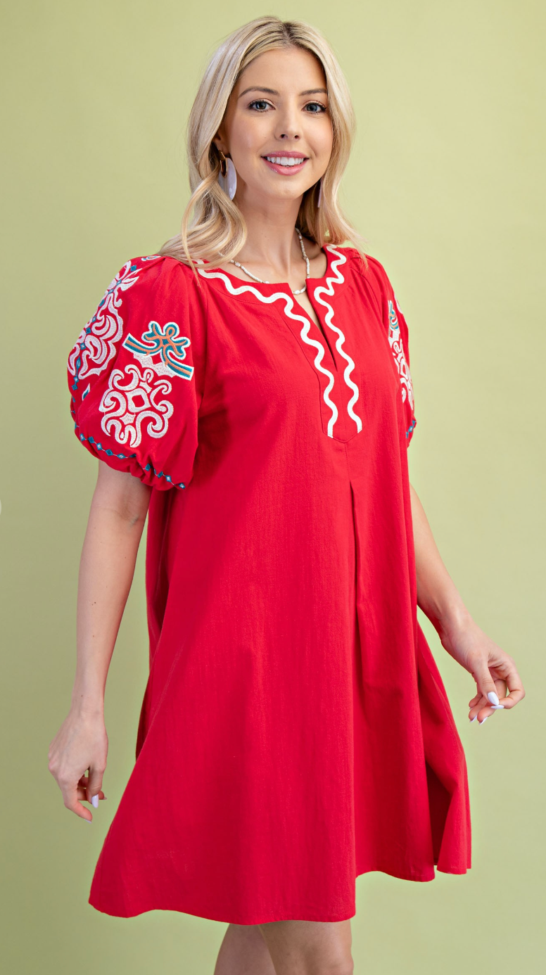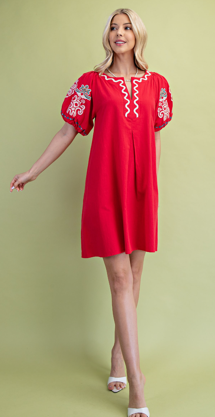 Indulge in effortless elegance with our Embroidered Notch Neck Pleated Dress. Delicately stitched embroidery accents the flattering notch neckline, while the pleated design adds a feminine touch. Perfect for any occasion, this dress will have you looking and feeling your best!