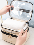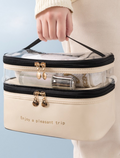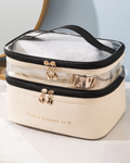 Beige Waterproof PVC Double-layer Cosmetic Bag