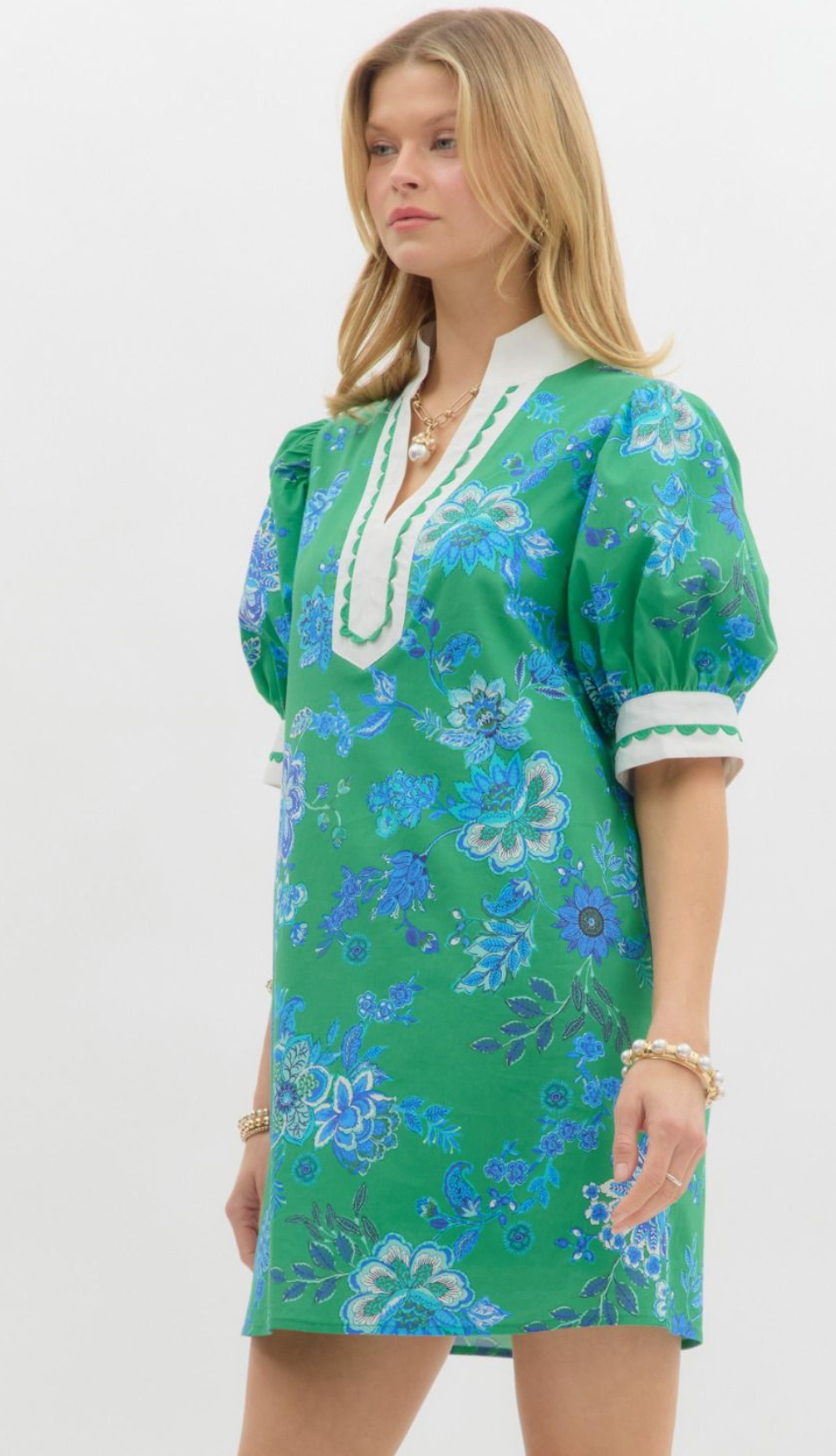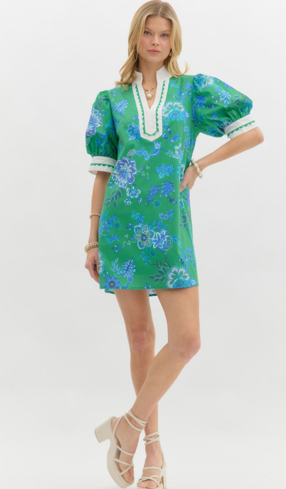 Unleash your inner bohemian with our floral print bubble sleeve mini dress! Featuring a caftan-inspired high neck collar and cuffs, this dress is perfect for any occasion. Lightweight and lined for all-day comfort and style. Elevate your wardrobe with this unique and chic piece!