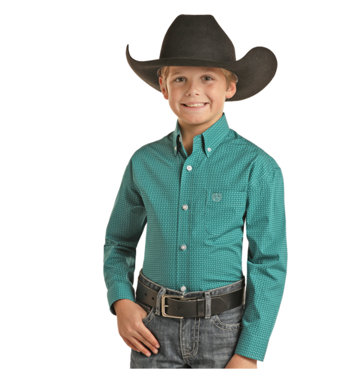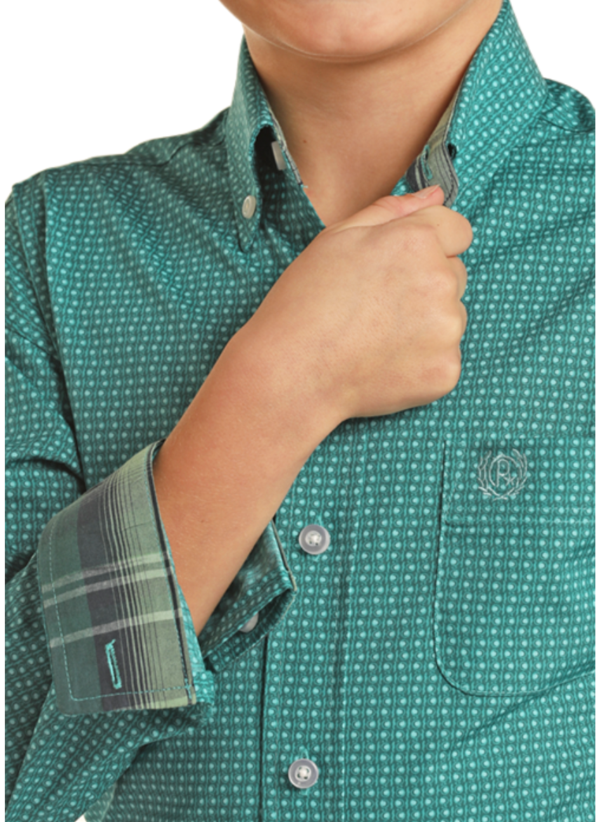 Boy's Ditsy Geo Print L/S Button Down Shirt