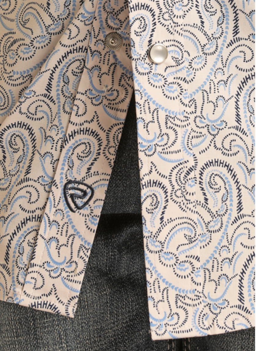 Make a bold fashion statement with this boy's long-sleeved pearl snap paisley shirt. Crafted with a vibrant paisley print and polished pearl snap buttons, this shirt is sure to turn heads. Make your boy look stylish and put together, so he stands out from the crowd. Ready to make a statement?