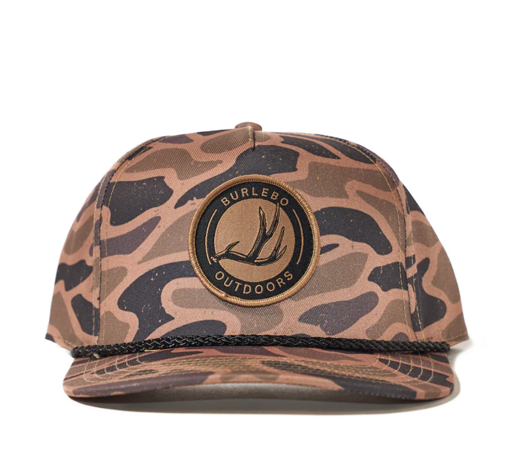 Bring the wild with you wherever you go in the Antler Patch Cap. Set against our custom Gauge Camo pattern, this cap features a circular embroidered patch with a bold antler graphic and “BURLEBO Outdoors” text. Built with structure and comfort in mind, it’s a dependable go-to for hunt camp, backroads, or just repping outdoor pride.