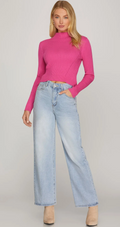 Chic Mock Neck Ribbed Crop Sweater