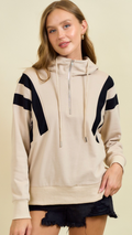 French Terry Colorblock Half Zip Up Hoodie Sweatshirt