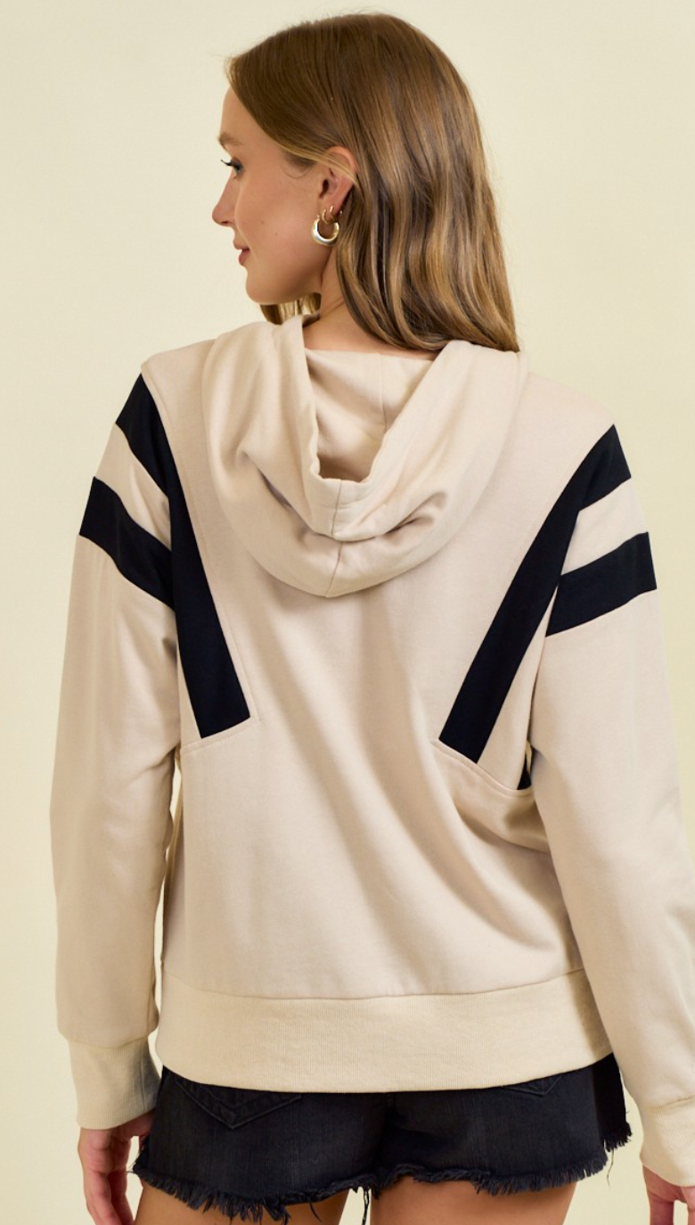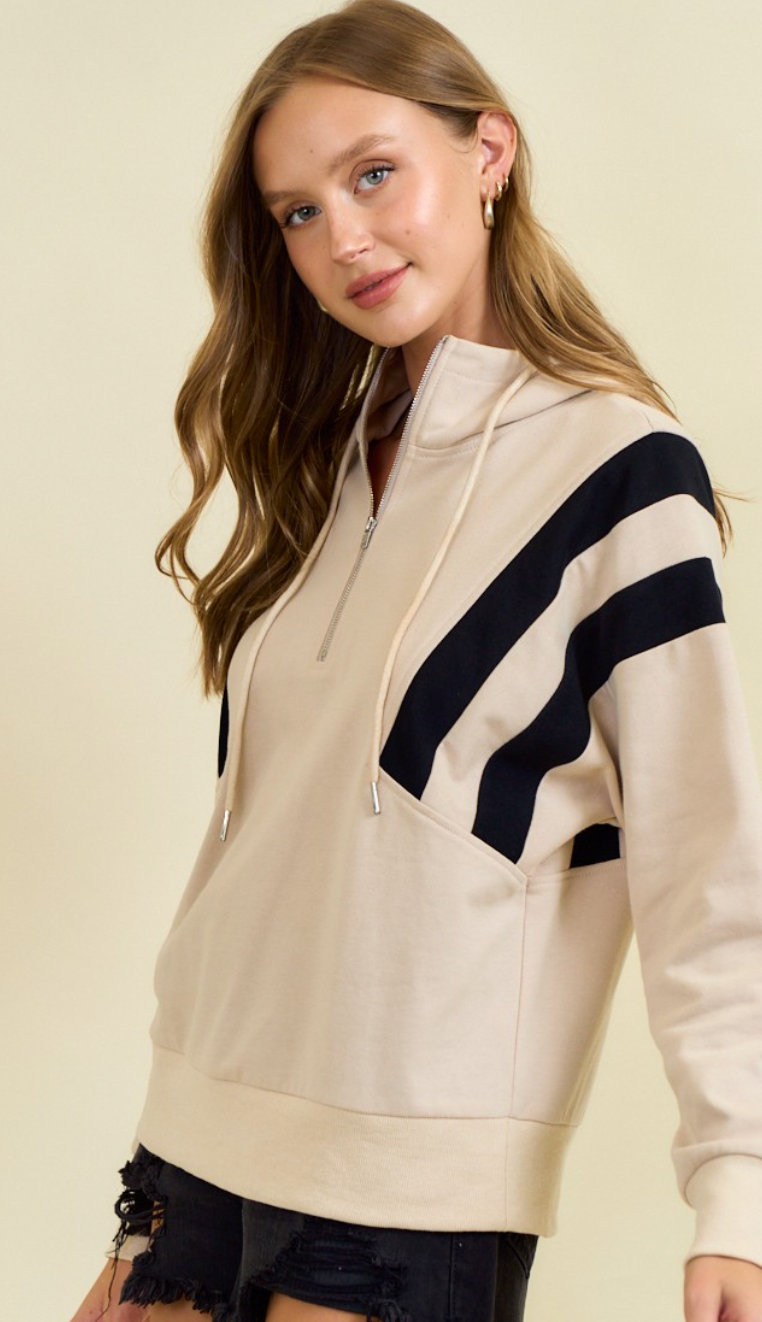 - French terry half zip up hoodie sweatshirt in a chic beige color