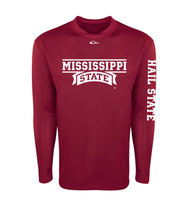 Drake- SD-MSU-1250- Mississippi State L/S Performance Shirt- Maroon