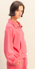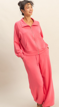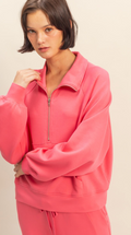 Stay cozy and stylish with this versatile zip-up collar sweatshirt featuring a front zipper, classic collar, and relaxed fit with raglan sleeves for ease of movement. Its kangaroo pocket and ribbed hem and cuffs provide both function and comfort. Pair it with the matching jogger sweatpants crafted from soft scuba fabric, offering a drawstring waist for a perfect fit and cuffed ankles for a modern look. Side pockets add convenience, making this set ideal for casual outings or lounging in effortless style.