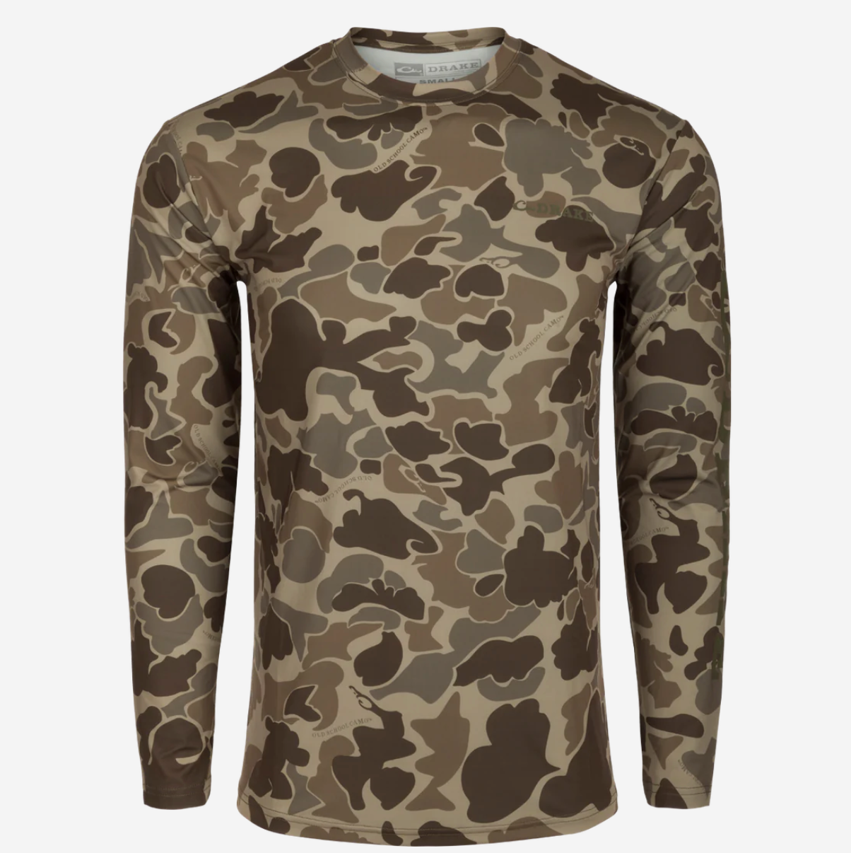 The Drake Performance Crew delivers exceptional functionality and is packed with performance features. The fabric has Built-In Cooling, UPF 50, Moisture Wicking, Breathable Stretch and Quick Drying. It is lightweight so it can be worn all year under many weather conditions. The Drake Performance Crew comes in Heathers and our exclusive Old School Camo. Wear it on the water, in the field, or wherever you need a performance garment.