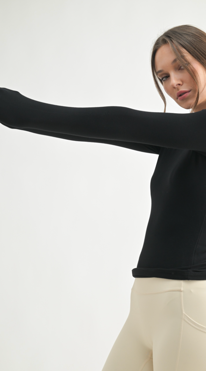 Essential Long-sleeved Micro-ribbed Athleisure Top