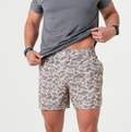 Lightweight and Quick Drying Elastic Waistband with Zipper and Rubber Buttons Moisture wicking for four- way stretch Double entry back pockets with zipper closure 88% polyester and 12% Spandex Available in a 7" running inseam