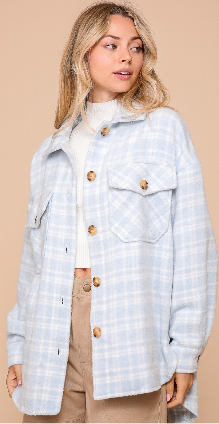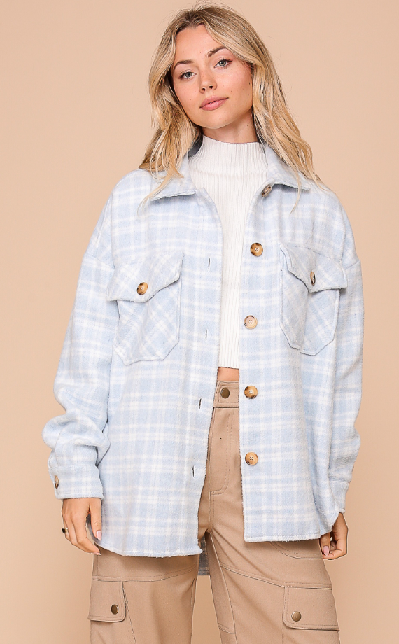 Elevate your wardrobe with our oversized plaid shacket, combining the comfort of a shirt with the warmth of a jacket. Its long sleeves and cozy fabric make it ideal for layering on chilly days, while the classic plaid print adds a trendy, timeless touch. Perfect for casual outings or relaxed weekends, this versatile piece keeps you stylishly comfortable wherever you go.