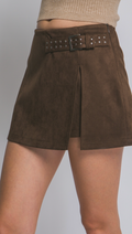 Elevate your style with this Faux Suede Mini Skirt Skort featuring a chic side slit and convenient inner shorts for comfort and confidence. The side zip-up closure ensures a sleek fit, while the soft blend of polyester and spandex offers flexibility and durability. Perfect for effortless day-to-night looks, this piece combines fashion and function seamlessly.