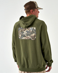 Fleece Hoodie - Deer Camo Patch Logo - Olive