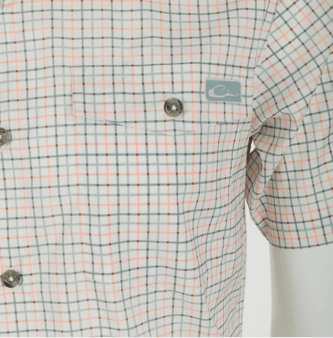 The Drake Frat Tattersall Button-Down Short Sleeve Shirt is made from lightweight performance fabric which allows moisture to wick quickly from the body. It also has a UPF30 rating for sun protection and has a natural stretch for ease of movement. The Drake Frat Tattersall has a classic fit, a hidden button-down collar, two button-through flap chest pockets, and a vented cape back. It has a sculpted hem which allows you to wear it tucked or untucked. Inside the hem is a built-in sunglass wipe. Classic styling and technical features put the Drake Frat Tattersall Shirt in a class all its own.