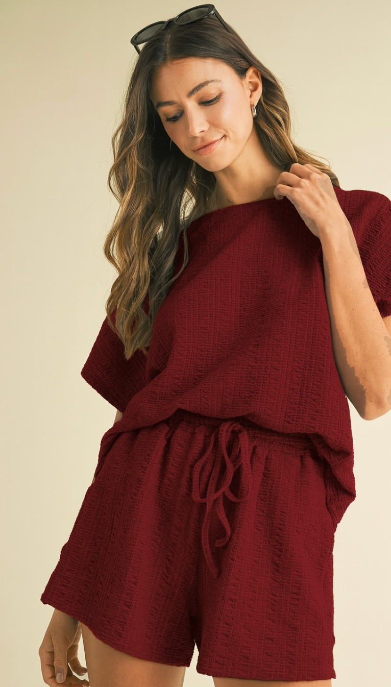 Elevate your casual wardrobe with this textured knit loose fit top and shorts set. Crafted for ultimate comfort, its breathable fabric and relaxed silhouette allow effortless movement while maintaining a chic, laid-back style. Perfect for lounging or casual outings, this set combines cozy softness with a flattering fit that enhances your natural ease and confidence. Embrace comfort without sacrificing style.