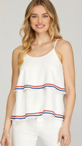 This double-layered woven linen cami top combines lightweight comfort with stylish detail. Crafted from breathable linen, it offers a soft, airy feel perfect for warm days. The delicate ric rac trim adds a charming, vintage-inspired touch, making it a versatile piece that elevates any casual outfit effortlessly.