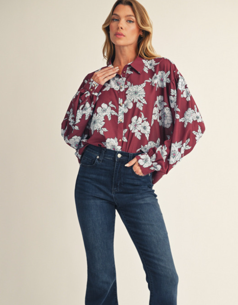 Experience effortless style with this drop shoulder button-down floral shirt. Its loose fit ensures all-day comfort while the delicate floral pattern adds a touch of feminine charm. Perfect for casual outings or relaxed office days, this versatile shirt elevates your wardrobe with ease and grace.