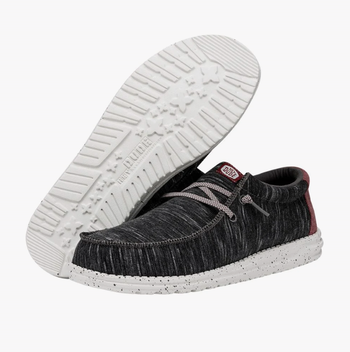 A foot-hugging, do-everything shoe. But in a full collection of colors so you can stock up. The Wally Jersey pairs our signature HEYDUDE™ soft, textile upper with our tried-and-true, lightweight and flexible sole. Easy-on laces let you get up and go with ease. Removable foam insole means the fun never stops. All-season-ready in speckled style.
