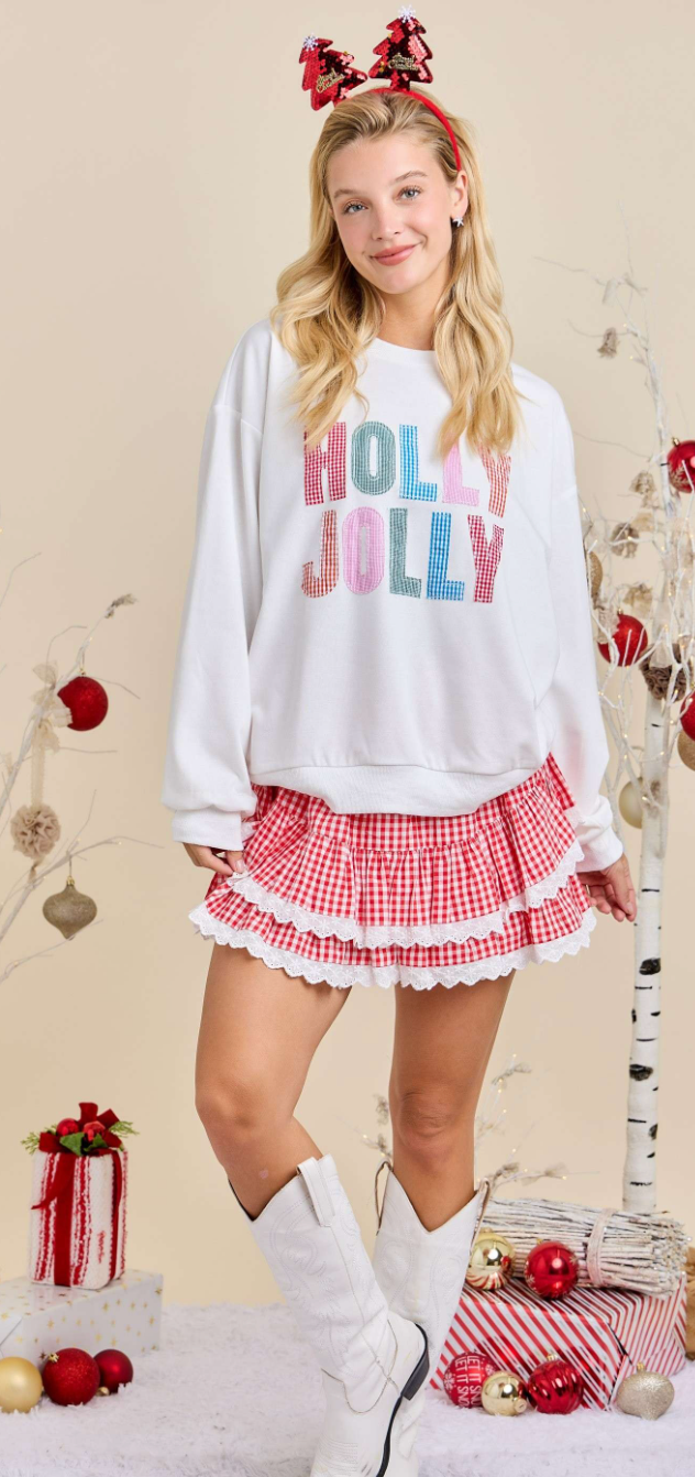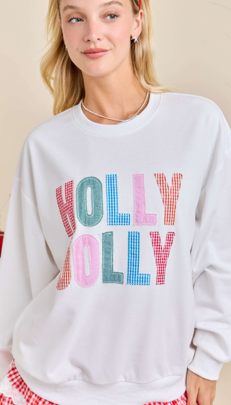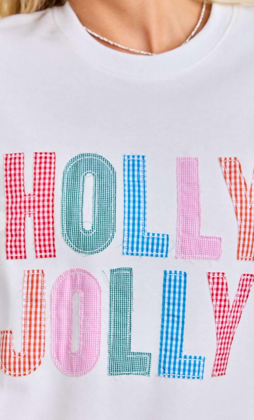 Holly Jolly Holiday Festive Sweatshirt Spread Christmas cheer with this vibrant holiday sweatshirt that instantly elevates your seasonal style. The eye-catching multicolor embroidered lettering pops against a crisp white backdrop, making a bold statement at holiday parties, family gatherings, and winter outings. Crafted for comfort and durability, this cozy pullover keeps you warm while showcasing your festive spirit. Whether you're shopping for yourself or searching for the perfect gift, this sweatshirt delivers holiday joy that lasts all season long. Make it your go-to choice for creating memorable moments wrapped in warmth and cheer.