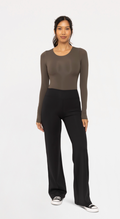 The Jacquard Stripe Wide Leg Pant combines style and comfort with a fitted waist and hip that flatter your silhouette. Made from mid-weight scuba fabric with extra stretch, these pants move with you while maintaining a secure fit. A discreet card pocket in the waistband adds practical convenience, making these pants perfect for both work and casual wear. Elevate your wardrobe with this versatile, fashion-forward piece that blends form and function seamlessly.