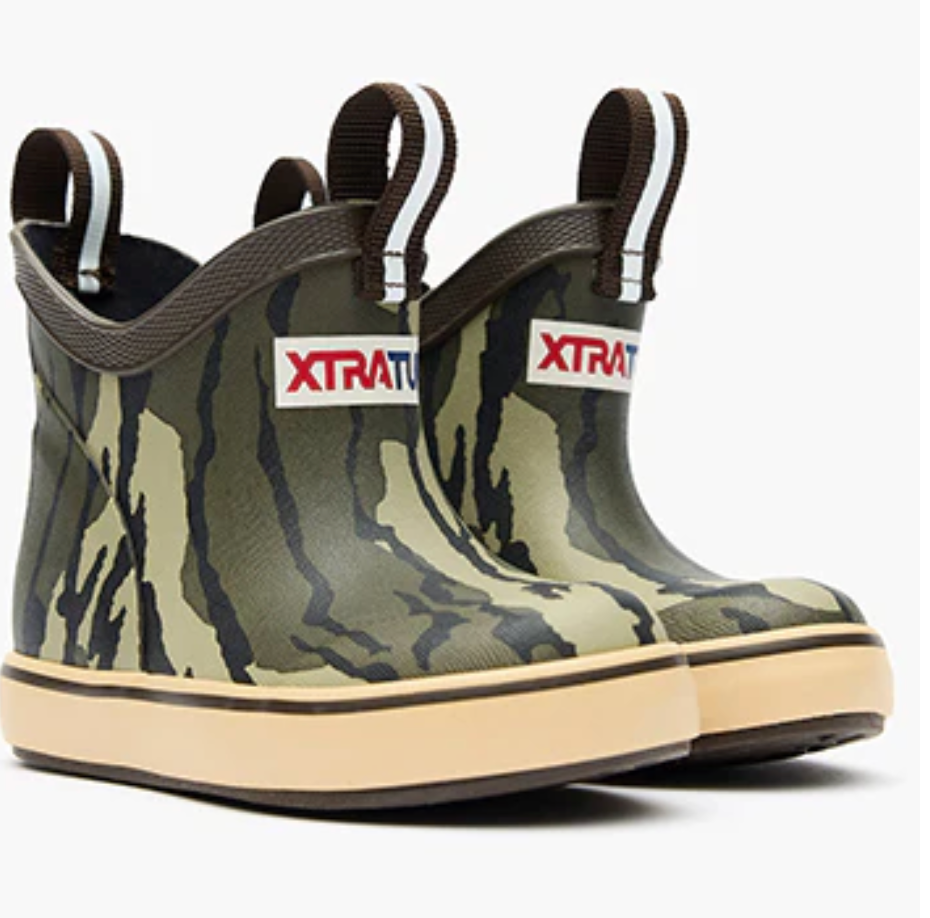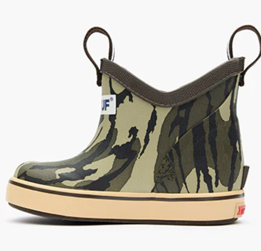 The Ankle Deck Boot has quickly become one of XTRATUF’s most iconic silhouettes due to its versatile design and Alaska proven performance. Now available in popular kids sizes for the toughest youth out there. The Ankle Deck Boot Kids is the first SRA slip resistant, non-marking rubber boot on the market designed specifically for young anglers. This version features Mossy Oak™ Bottomland camouflage print, made for life outdoors.