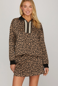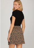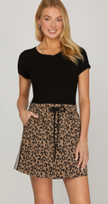 Elevate your style with this leopard knit mini skirt featuring a comfortable drawstring waist for a perfect fit. The side rib band detail adds a flattering touch, while practical pockets keep essentials close. It's the ideal blend of trendy and functional, making it a must-have addition to your wardrobe.