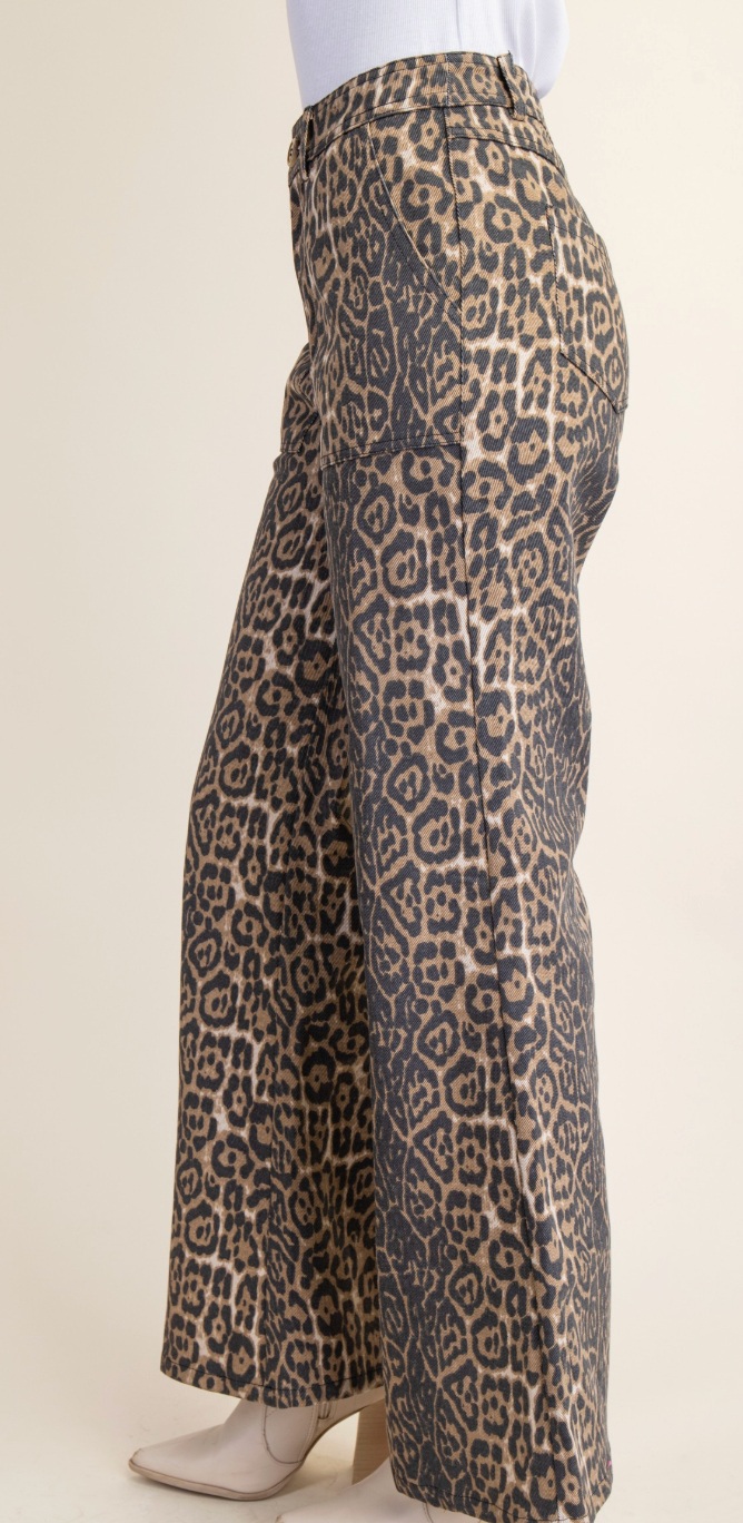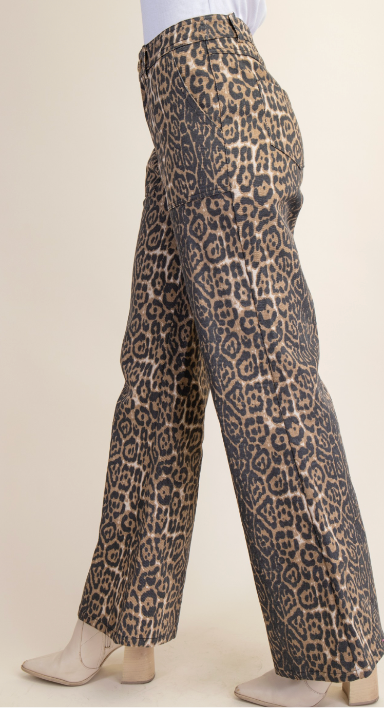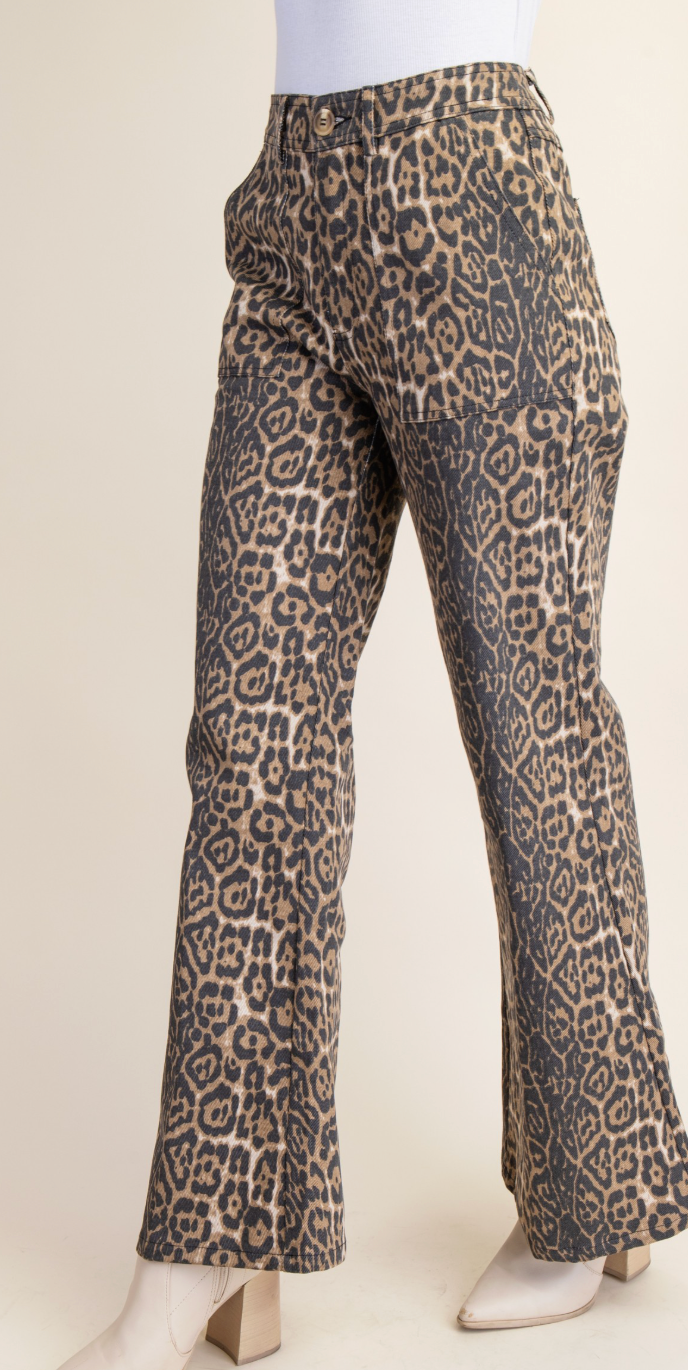 Stand out with these Leopard Print Flare Jeans that perfectly blend bold style and comfort. The eye-catching print adds a fierce touch to your wardrobe, while the flattering flare cut enhances your silhouette. Crafted for both confidence and ease, these jeans are ideal for making a statement wherever you go. Elevate your look effortlessly with this unique and trendy piece.