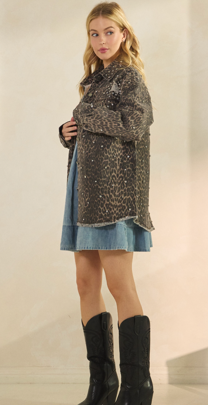 Elevate your style with this Printed Rhinestone Denim Jacket, a perfect blend of bold patterns and sparkling accents. Crafted from durable denim, it offers both comfort and lasting wear. The eye-catching rhinestone embellishments add a touch of glamour, making it ideal for standing out at any event or casual outing. Layer it over your favorite outfit to effortlessly boost your look with trendy flair and confidence.