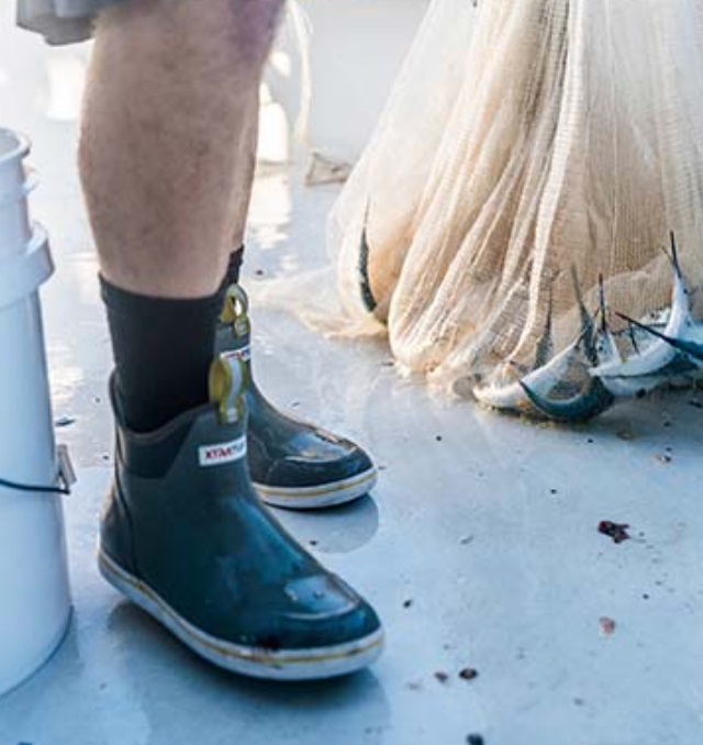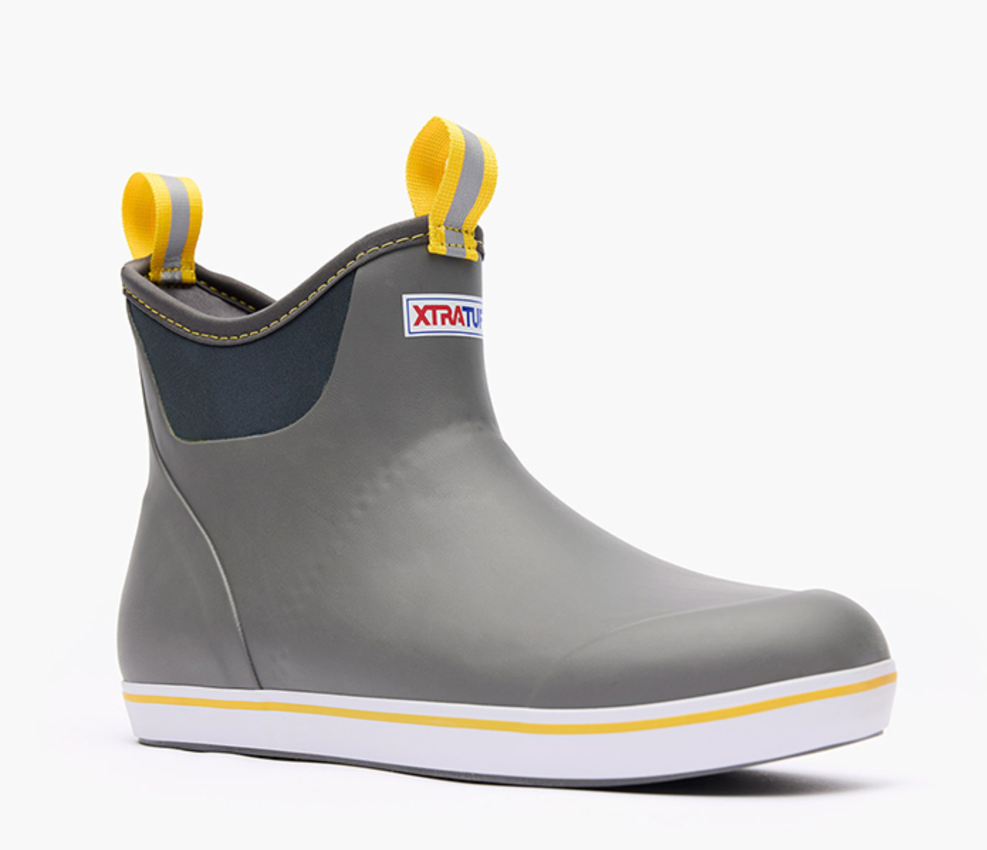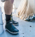 The Ankle Deck Boot collection has been crafted specifically for off-shore anglers. Anglers are athletes, and like any athlete they demand the best footwear to help them perform at a high level. We've created a lightweight design with the same slip-resistant Chevron outsole found on our Legacy boots. The 6" ankle deck boot is a great option for any on-the-water athlete looking for protection with slip-on-and-go styling. This boot is constructed with hand-layed rubber, and so not classified as a commercial grade boot. For those looking for a commercial grade ankle height deck boot please search for the Wheelhouse Boot.