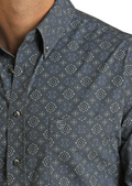 Men's Vintage Medallion Long Sleeve Button-Up Shirt
