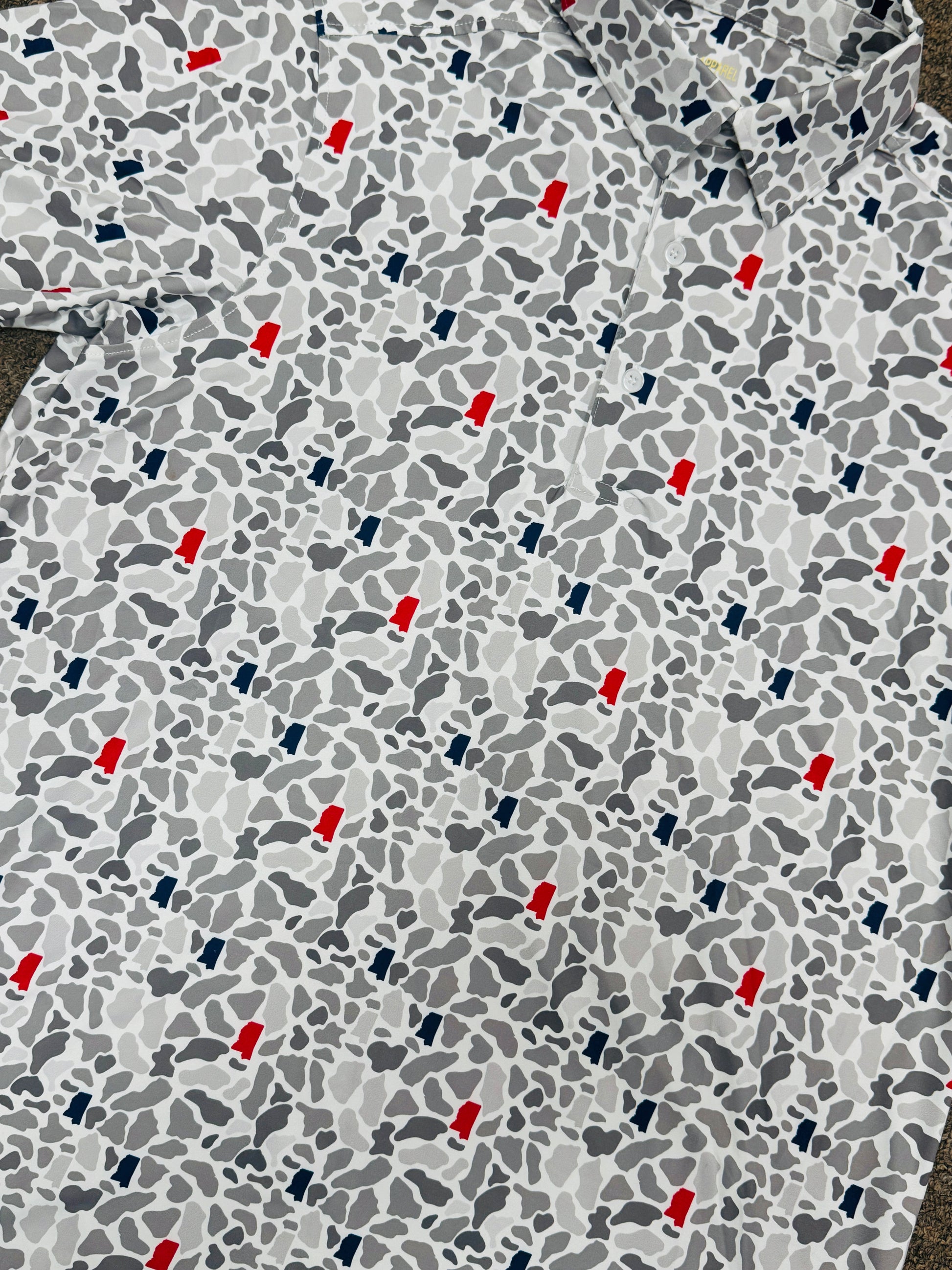 Stay comfortable and stylish with the Mississippi Camo Performance Polo. Crafted with breathable, moisture-wicking fabric, this polo keeps you cool and dry during any activity. Its camouflage design offers a rugged, outdoor-inspired look, perfect for work or casual wear. Durable and easy to care for, it combines performance with everyday practicality. Elevate your wardrobe with this versatile polo made for those who value comfort and function. Perfect for GAME DAY.