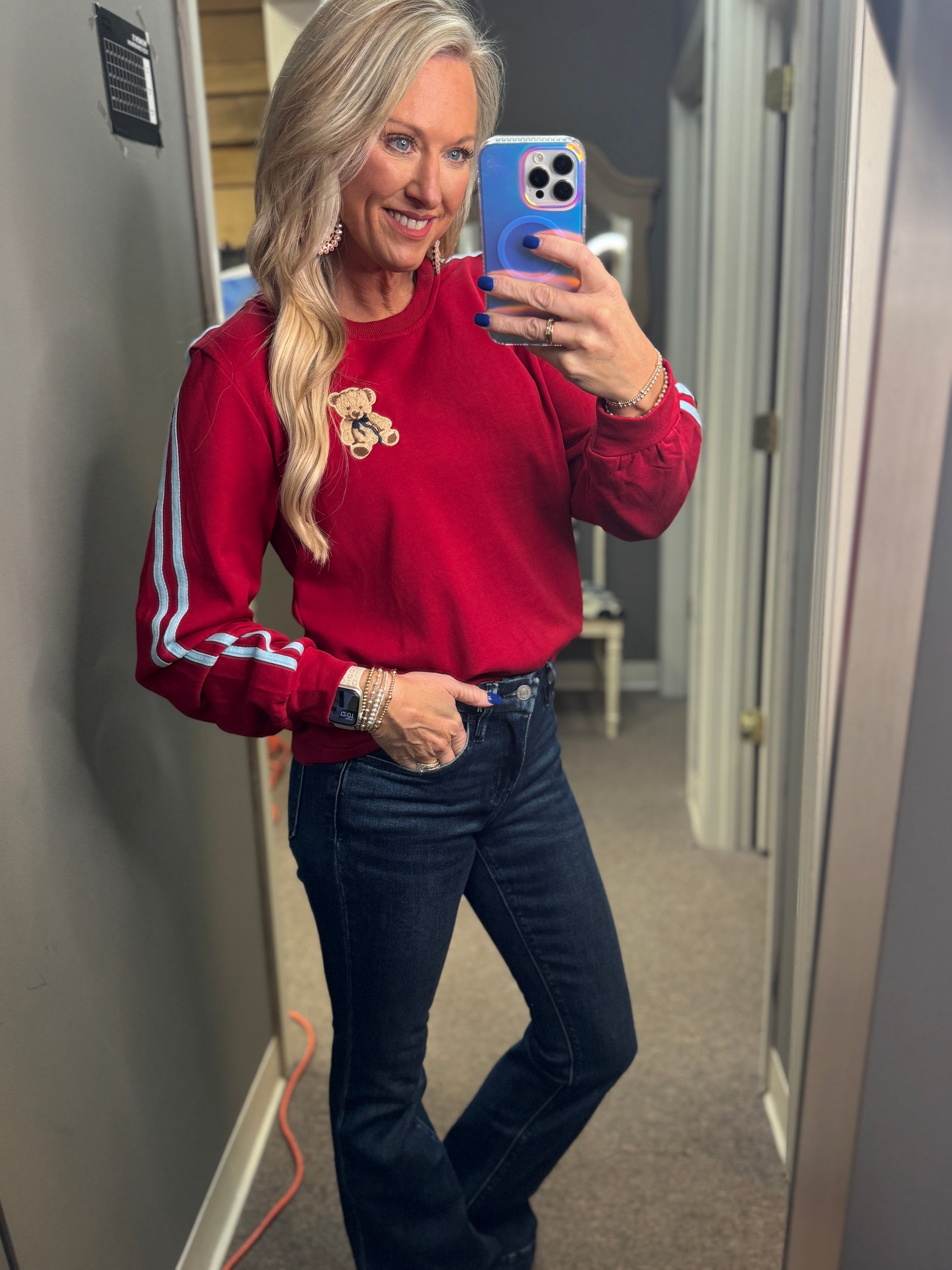 These Mid Rise Full Length Flare Jeans combine comfort and style with their stretch denim fabric and flattering fit. Featuring a 9 1/4" rise and a 34" inseam, they sit comfortably at the waist while elongating your legs. The wide 22" leg opening adds a trendy flare silhouette perfect for any occasion. Designed to move with you, these jeans offer both ease and elegance in one versatile piece.
