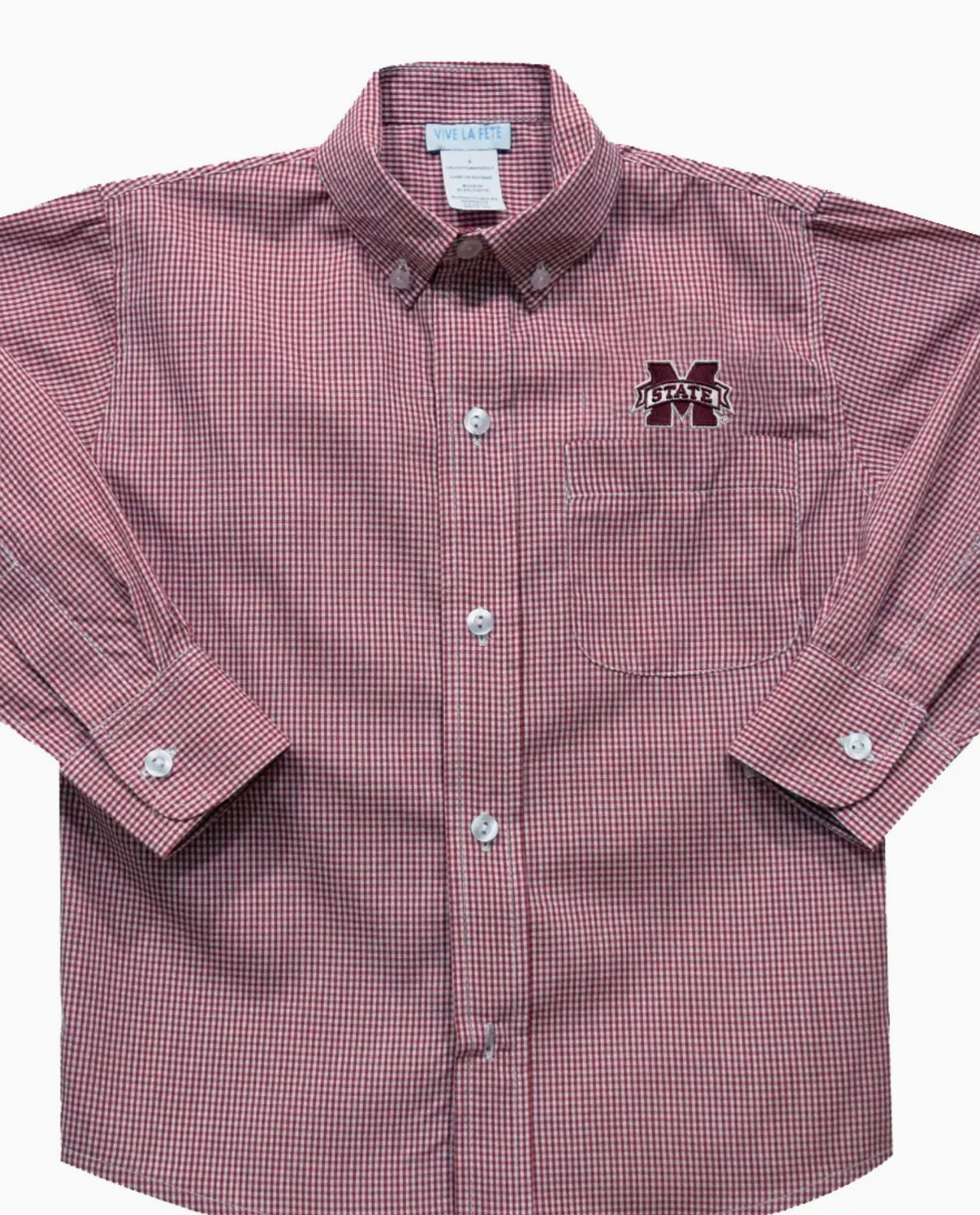 Mississippi State Bulldogs Embroidered Gingham Button Down