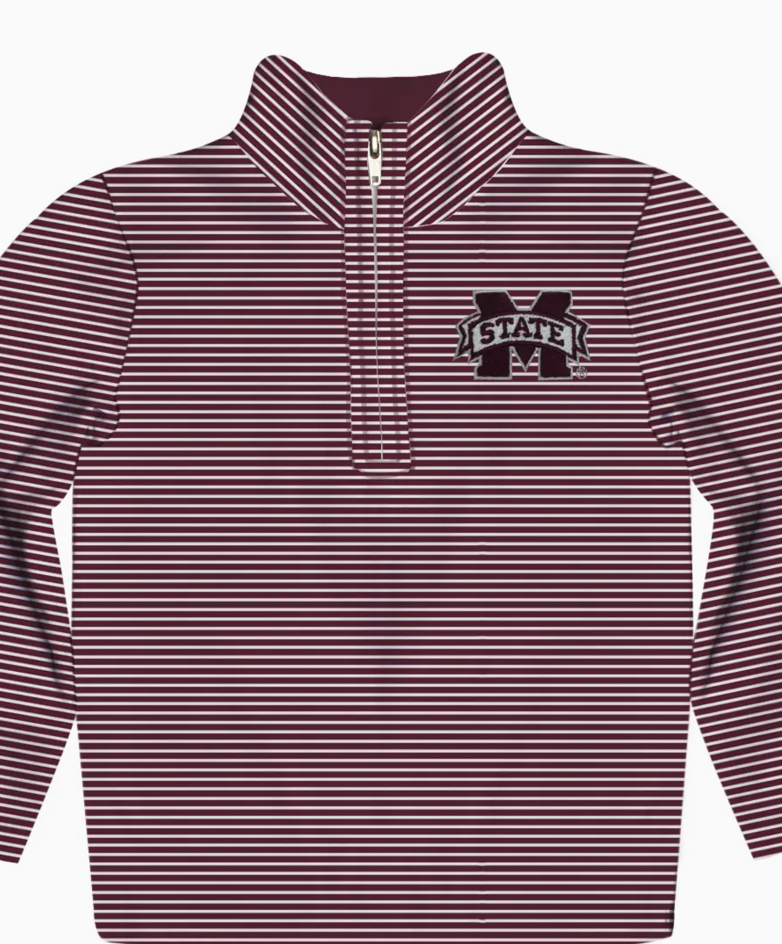 Stay warm and show off your team pride with the Mississippi State Embroidered Stripes Quarter Zip Pullover. Its embroidered stripes add a touch of style, while the quarter zip design offers versatility for any weather. Perfect for passionate fans looking to represent their team in a comfortable and fashionable way!
