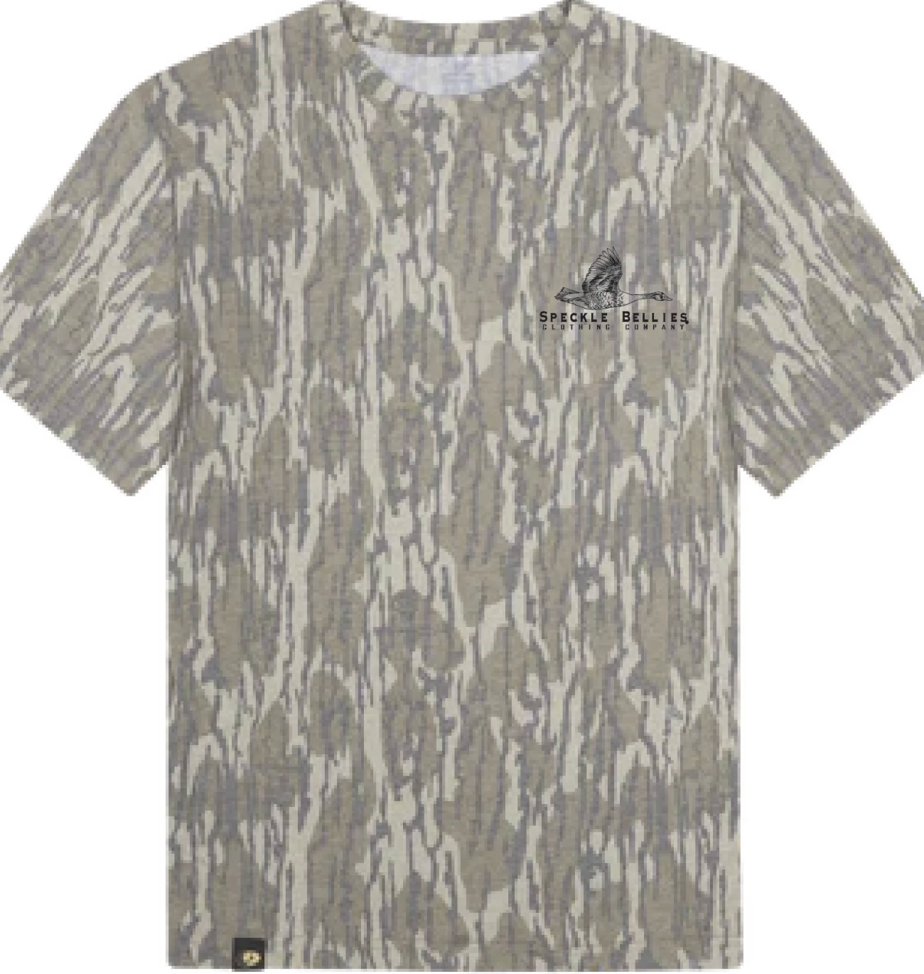 Embrace your passion for waterfowl hunting with this classic Mossy Oak Goose Logo T-Shirt. Featuring the iconic camouflage pattern trusted by hunters nationwide, this tee combines style with authentic outdoor heritage. The bold goose logo makes a statement whether you're heading to the field or showing your hunting pride around town. Crafted for comfort and durability, it's the perfect addition to any hunter's wardrobe. Wear it with confidence and connect with a community of dedicated sportsmen.