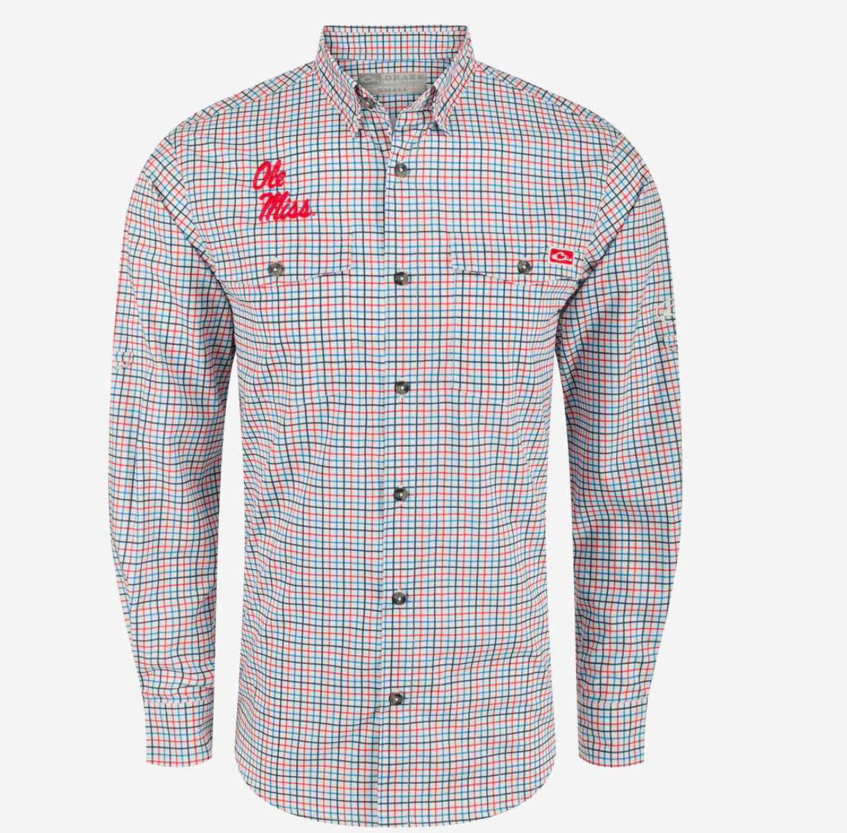 Hit the Grove in the Drake Frat Tattersall. The Frat is made from 95% polyester and 5% spandex. The performance fabric is lightweight at 95 GSM which allows moisture to wick quickly from the body. It also has a UPF30 rating for sun protection for those September afternoons in Vaught-Hemingway. It has a natural stretch for ease of movement, a classic fit, a hidden button-down collar, two button-through flap chest pockets, and a vented cape back. It has a sculpted hem which allows you to wear tucked or untucked and has an adjustable tab if you want to roll up your sleeves. Classic styling and technical features put The Drake Frat Tattersall in a class by itself.